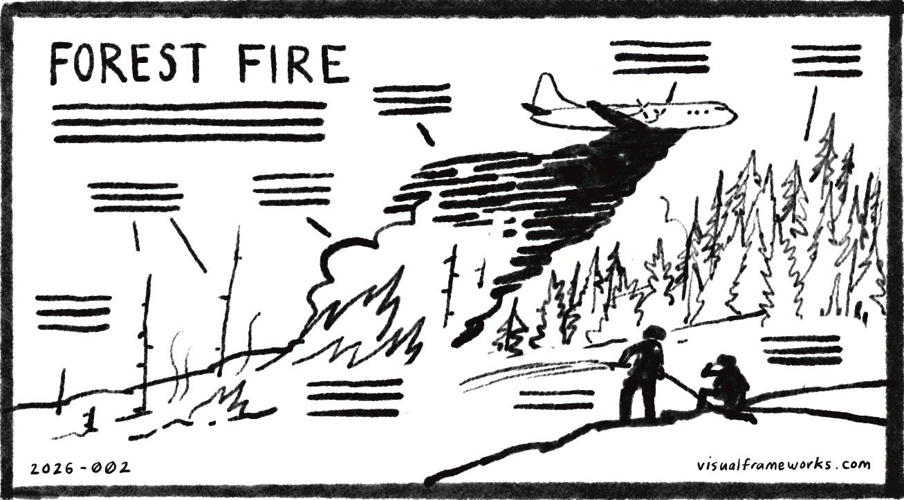 What has been accumulating in your situation, quietly, for longer than you’ve acknowledged? Is the fire you’re facing destroying something essential, or clearing something that had become too dense to see through? Are you actively fighting the fire, or watching from the hillside? What couldn’t establish itself in the crowded system that now has light and open ground? Where is new growth already beginning?